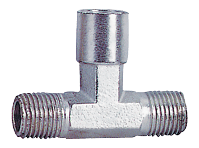 T-образный переходник (тройник) позволяет подсоединить к пневмомагистрали дополнительный участок. Крепление — резьба 1/2″…